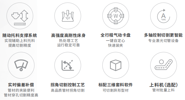 1. 專業(yè)管材控制系統(tǒng)支持方管、圓管、橢圓形等拉伸管、角鋼、槽鋼的高精度、高效率切割;