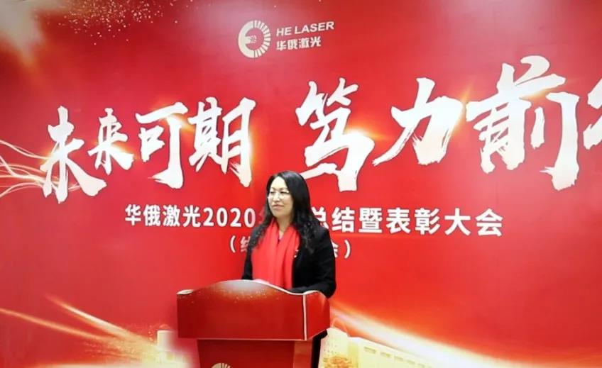 華俄激光董事長(zhǎng)付俊女士在年終總結(jié)大會(huì)上作了《涅槃再生 篤力前行 未來可期》的致辭,與大家共同回顧了2020年公司取得的驕人成績(jī),并指明了2021年公司的發(fā)展方向。