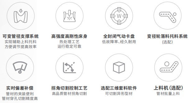 1. 專業(yè)管材控制系統(tǒng)支持方管、圓管、橢圓形等拉伸管、角鋼、槽鋼的高精度、高效率切割;