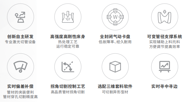 1. 專(zhuān)業(yè)管材控制系統(tǒng)支持方管、圓管、橢圓形等拉伸管、角鋼、槽鋼的高精度、高效率切割;