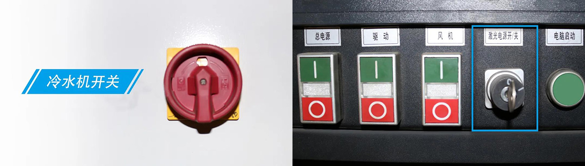 2、啟動配套的冷水機,等待水溫調(diào)整到預(yù)定溫度,開啟激光使能開關(guān);